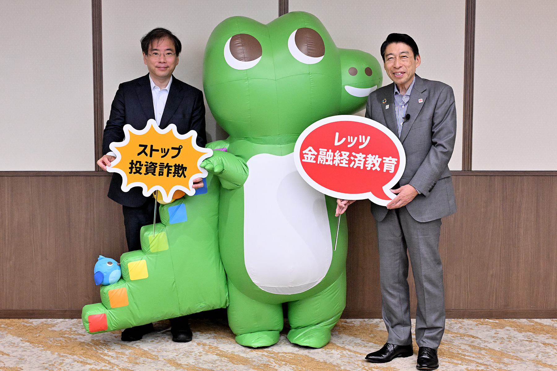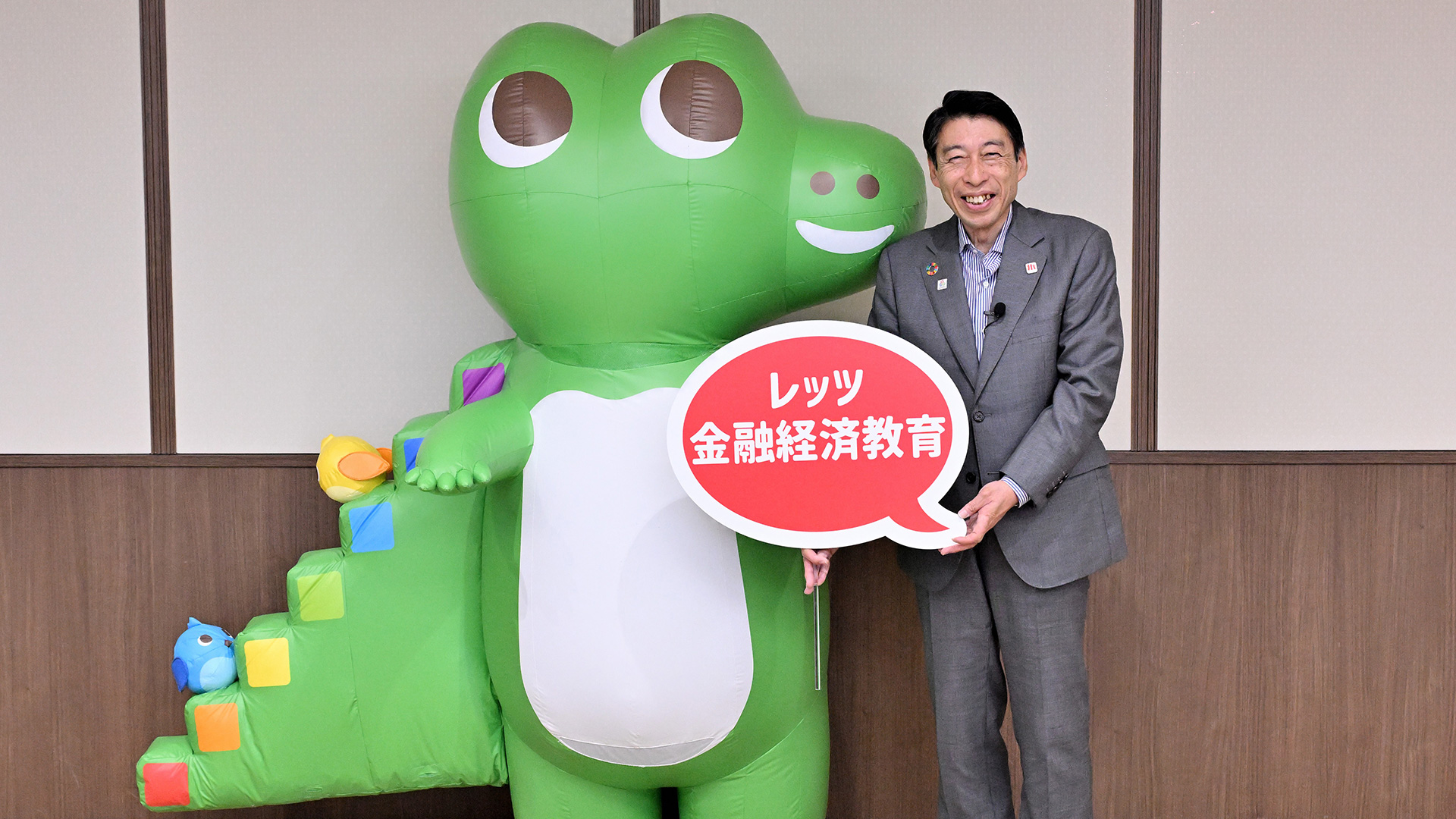 まずは福岡財務支局の福島支局長が、ワニー参事官のメッセージを代読。「福岡県は金融経済教育に熱心だと聞いています。ソフトバンクホークスのように福岡県を金融経済日本一にしたい」と、5月31日(土)にイオンモール福岡にて実施される金融経済教育イベント「ワニーサと学ぶ 未来のためのお金の教室in福岡」への意気込みを語りました。