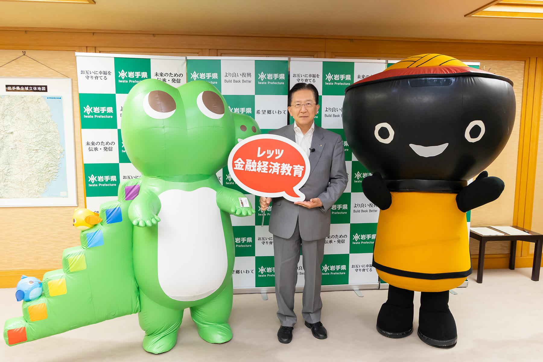 これに対し、達増知事は「県民が金融経済に関する正しい知識や判断力を身につけることは、経済的に自立し、安心して暮らしていくために非常に重要であると認識しています」と話しました。岩手県ではすでに、高等学校・専門学校を対象とした金融セミナーや、企業・団体向けの出前講座などを開催し、金融リテラシー向上の取組を進めています。今後も、金融庁をはじめ関係機関と連携しながら、金融経済教育の一層の充実に努めていくとの意向が示されました。また、岩手県出身の漫画家による金融リテラシーに関する漫画も紹介し、「県民とともに金融リテラシーを高め、様々なトラブルに巻き込まれないように生活の安全確保に努めていきます」と力強いお話がありました。