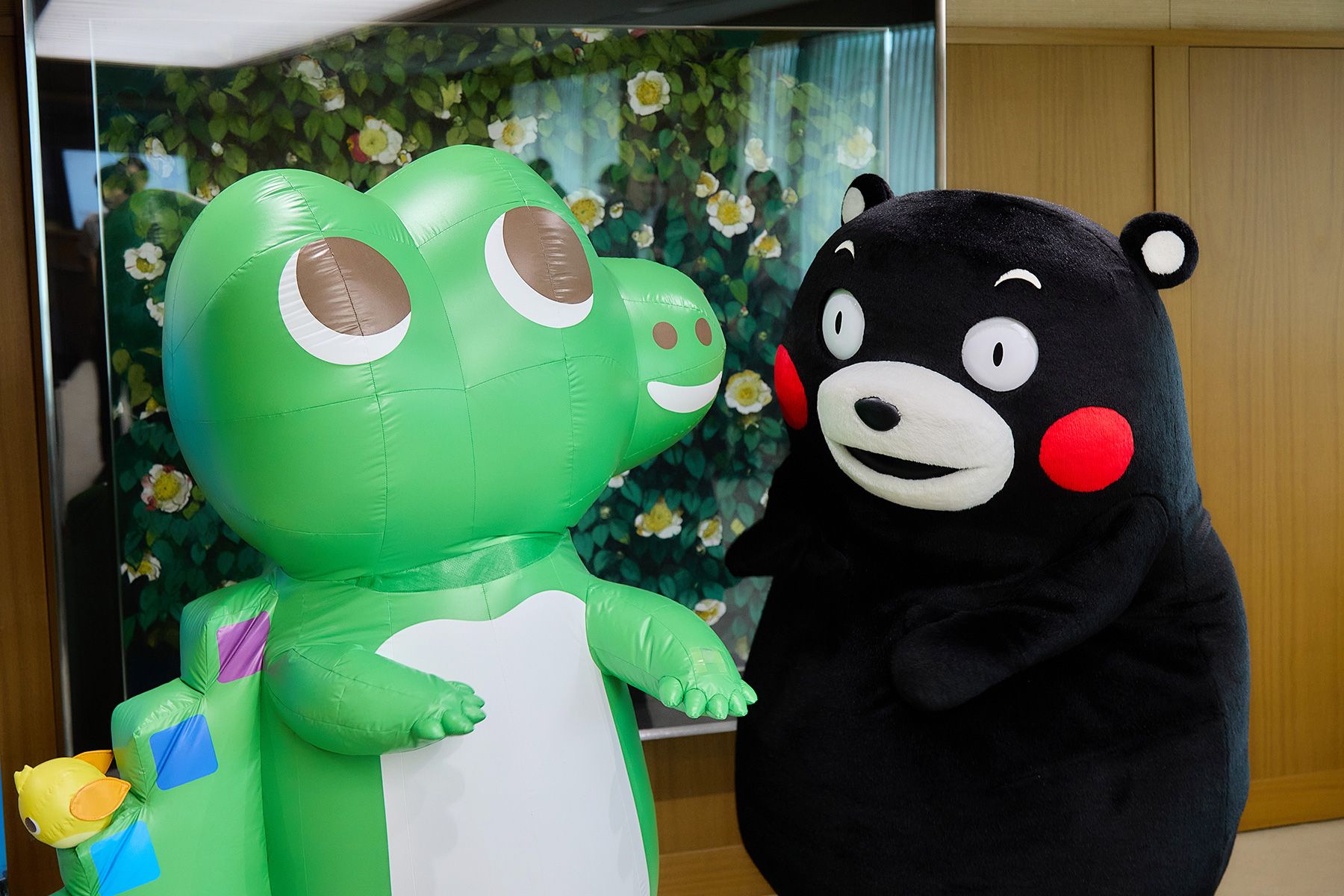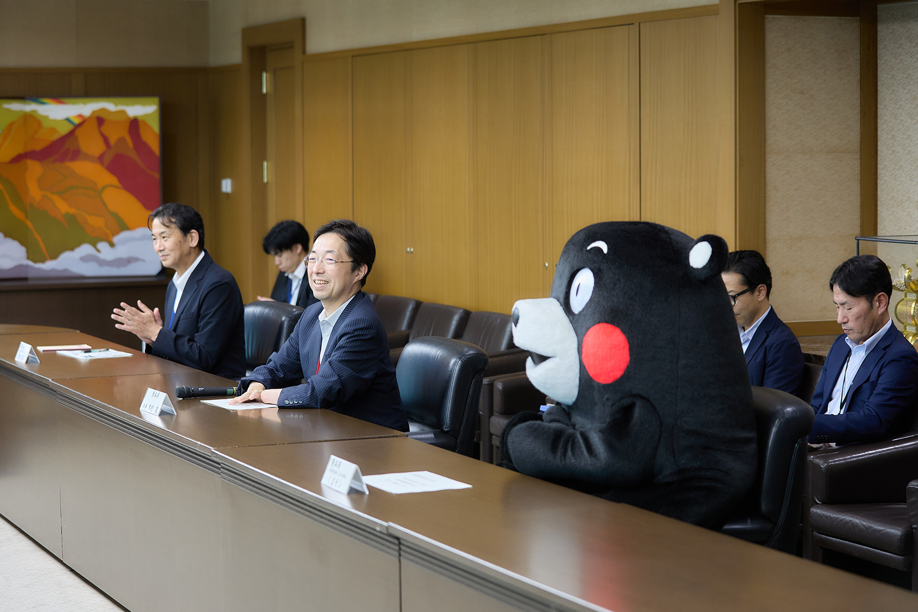 木村知事への表敬訪問を終えたワニー参事官は、会場の隅でくまモンと何やら話し込んでいる様子。今後の金融経済教育のPRについて、とても良いアドバイスをもらえていたようでした。
