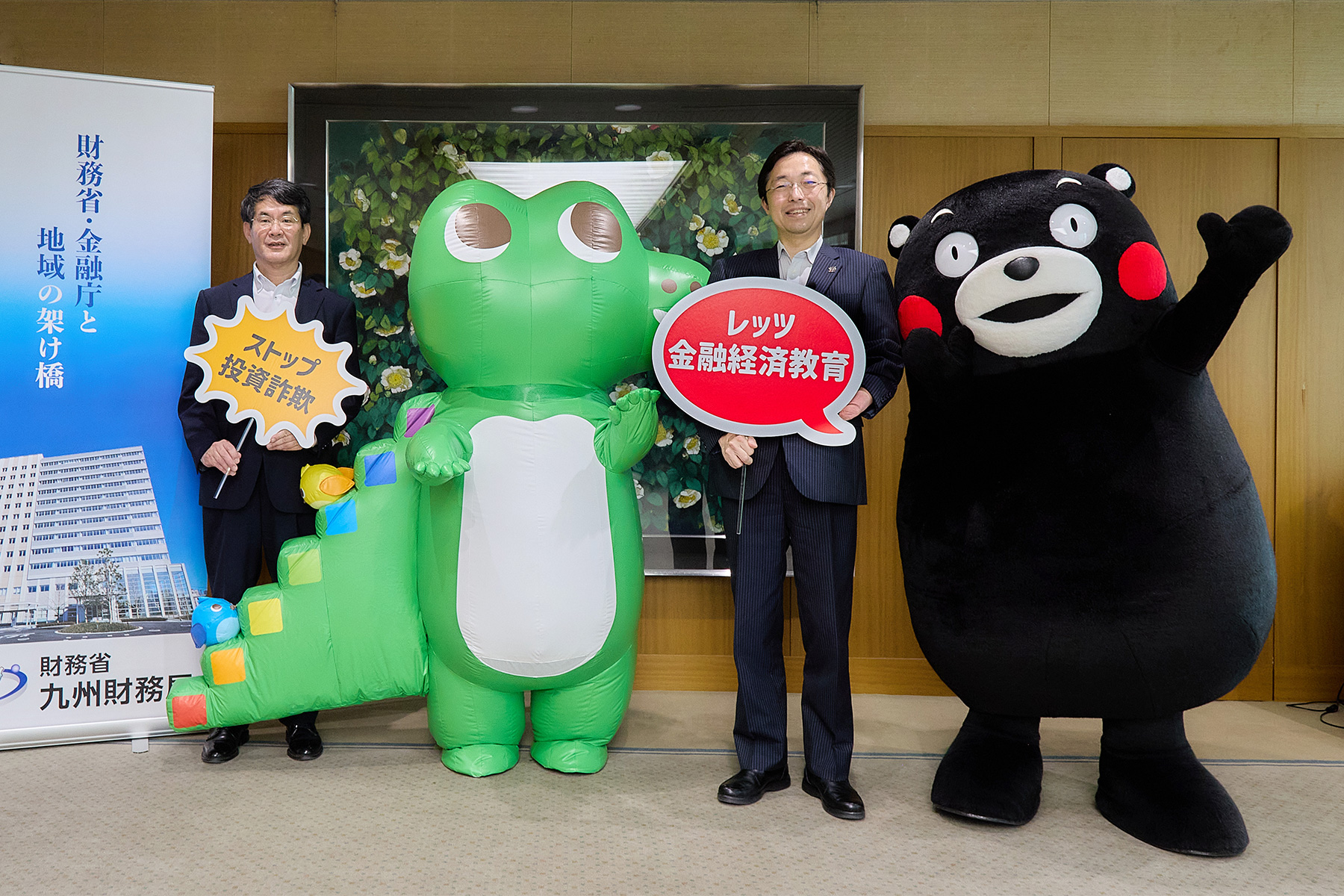 木村知事は「金融商品の多様化によって、消費者の選択肢が広がっていく中で、金融経済教育が強く求められる時代になっていると感じます。4月に発足した『ALL熊本金融経済教育プロジェクト』を軸に、ワニー参事官とくまモン、金融庁と財務局そして熊本県が一緒になって、金融経済教育に取り組んでいきたいと思っています」と意気込みを語りました。